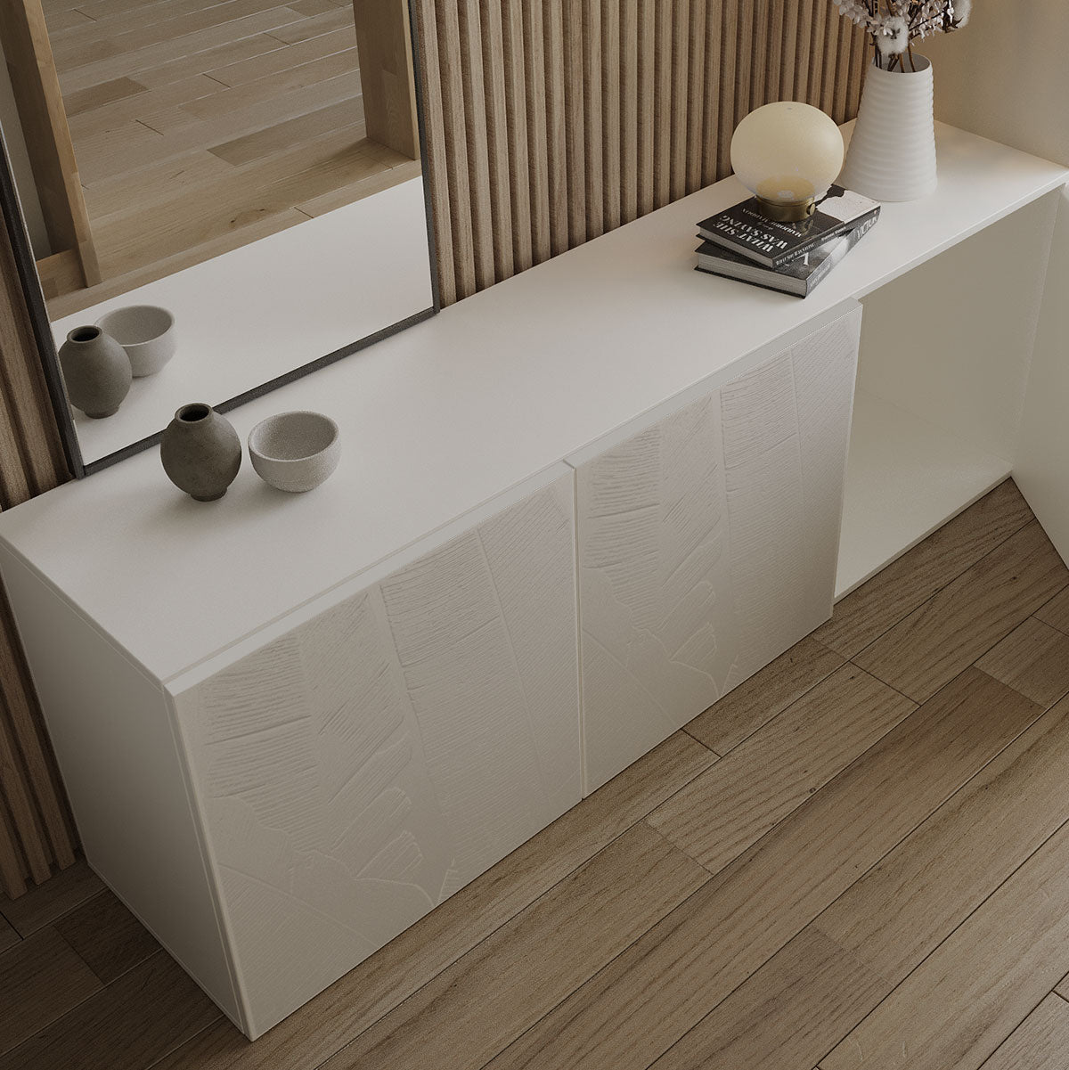 Unsere Möbelfolien sind exakt auf die Maße der BESTÅ Schrankkombinationen zugeschnitten – für eine nahtlose Integration in dein Zuhause.