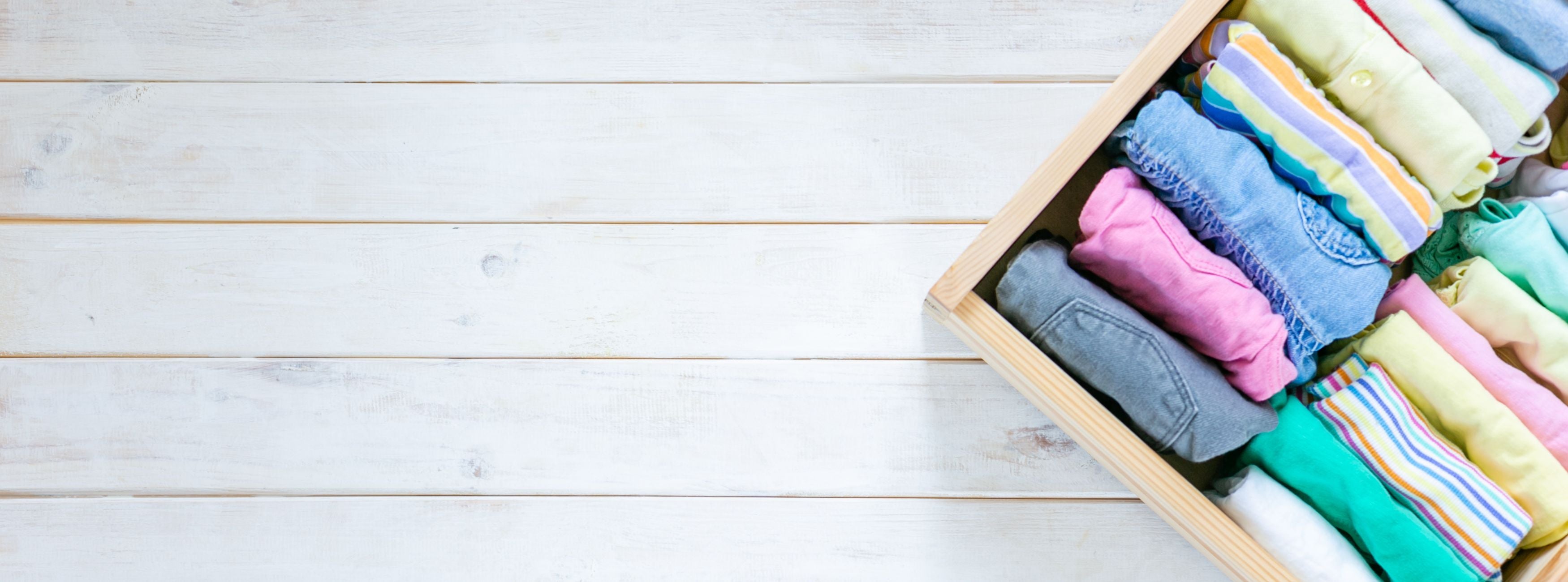 Viele Gegenstände, insbesondere Kleidung, sollen so gefaltet und verstaut werden, dass sie vertikal stehen. Dies spart Platz und bietet eine bessere Übersicht über die vorhandenen Gegenstände.
